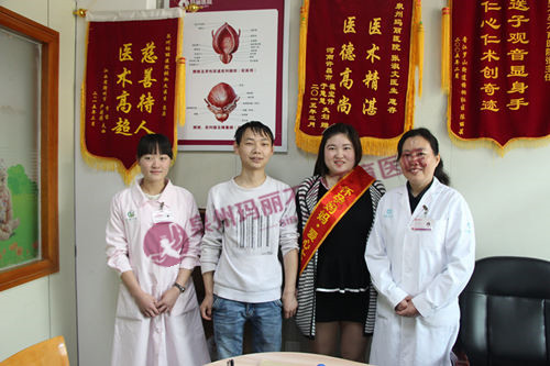 慧慧从青春期发育时就开始月经不调,也曾去医院检查治疗过,每次来月经都需要靠药物才能来,一停药月经就不来了,吃药反反复复也是没有根治,对此慧慧也很苦恼,同时月经不调也影响了自己的生育之路。2015年3月29日,为了感谢玛丽医院实现了她当妈妈的梦想,怀孕2个多月的于慧慧特意带着锦旗来到医院跟大家伙报喜。看着要当上妈妈的慧慧,玛丽医院的医生护士们无不为其感到欣喜!