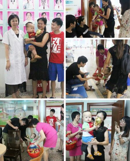 今天看到这个活蹦乱跳的小家伙,你是不是也被萌化掉了呢?在今天的报喜过程中,小家伙很是给力,表现力可圈可点,甚是让人喜爱,一路的喜糖都是由他发放,还时不时的咿呀两句,像是在说,我是玛丽宝宝,希望阿姨叔叔们也生个像我一样的宝宝。其实早前在5月份的时候就有见过美玲夫妇了,那会儿已经有带着宝宝过来一起参加我们的宝宝回娘家活动,那时候比较多人,也不能好好感谢主任,所以今天美玲和老公带着儿子再次回了娘家,希望让这份快乐和感动能够感染更多人。