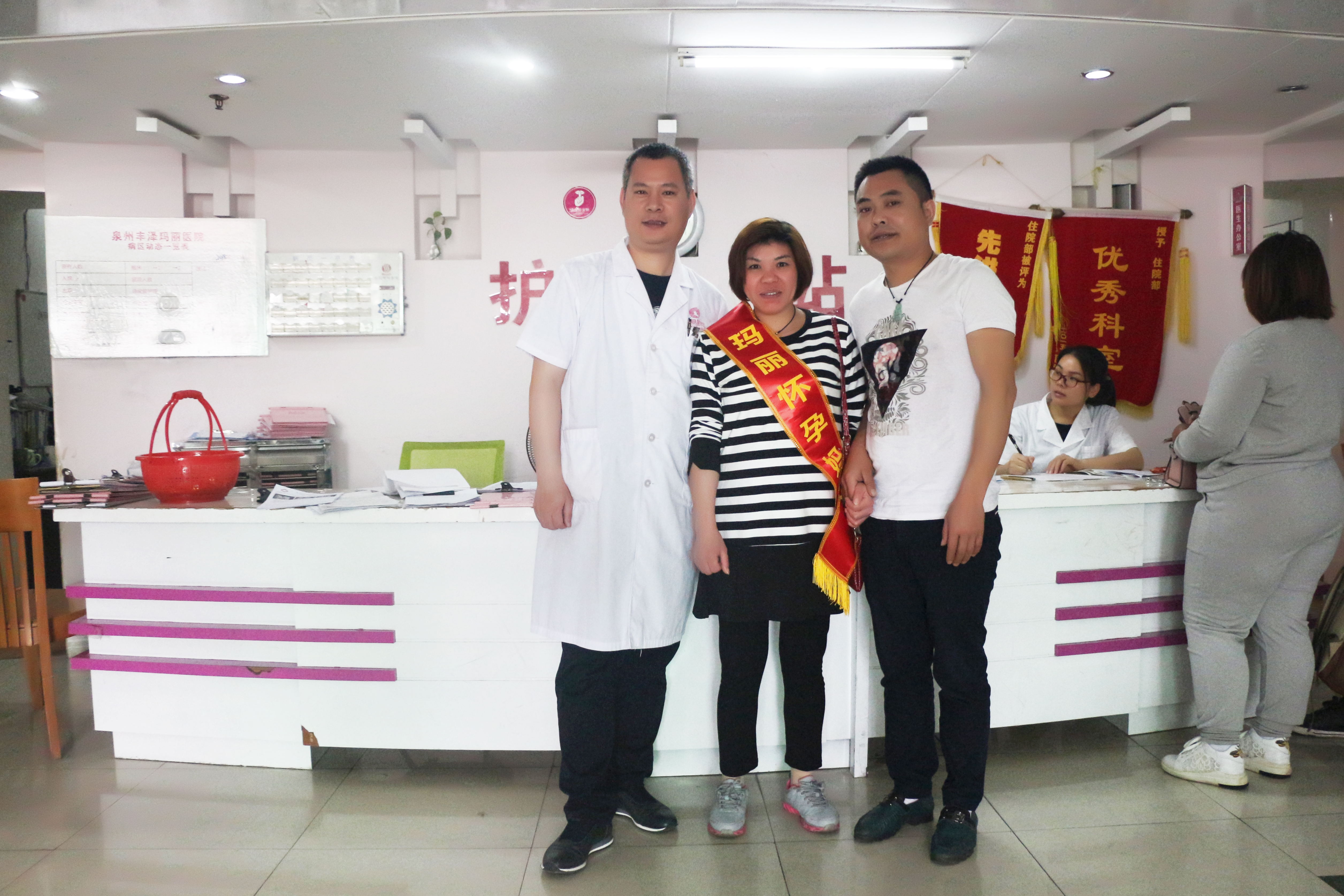 4月16日,奉霞夫妇怀着感恩的之心,带着肚子里4个月的两个宝宝来泉州玛丽医院报喜,她说,特别感激泉州玛丽医院圆她当妈妈的梦,特别感谢陈主任在她放弃孩子的时候,没放弃她和两个孩子,希望把幸孕传递给更多的不孕妈妈,让她们都能实现当妈妈的愿望!