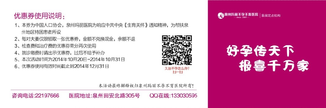 泉州玛丽医院,十六年专业治不孕不育。以"让每个不孕家庭都拥有自己的亲生孩子"为共同愿景,成功助孕数万个家庭,患者口碑相传。要孩子,找玛丽!